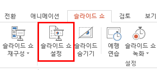 PPT메뉴 맨위에 보면 "슬라이드 쇼"라는 메뉴가 있다 여기서 "슬라이 쇼 설정"이라는 메뉴로 들어간다.