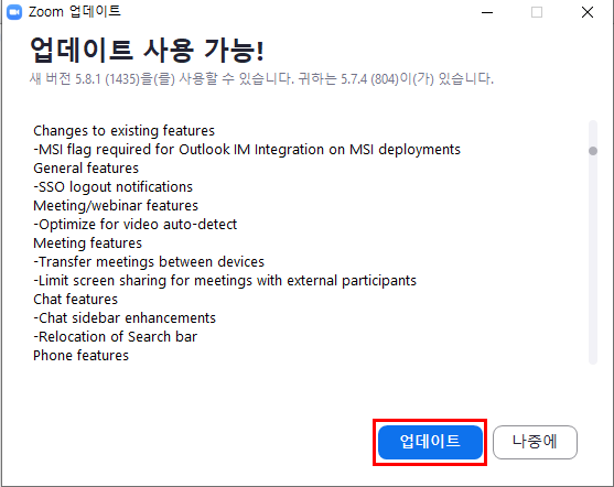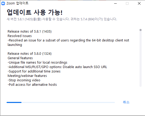 줌은 생각보다 자주 업데이트가 진행된다.