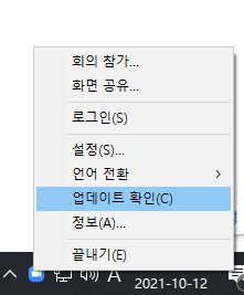 우측 하단의 트레이 아이콘을 우클릭하면 업데이트 메뉴가 있다.