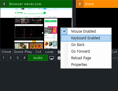 브라우저에서 키보드 기능을 사용해야 한다면 사용 후 다시 비 활성화 해야지 Vmix에 입력해놓은 키보드 단축키가 작동하게 된다.